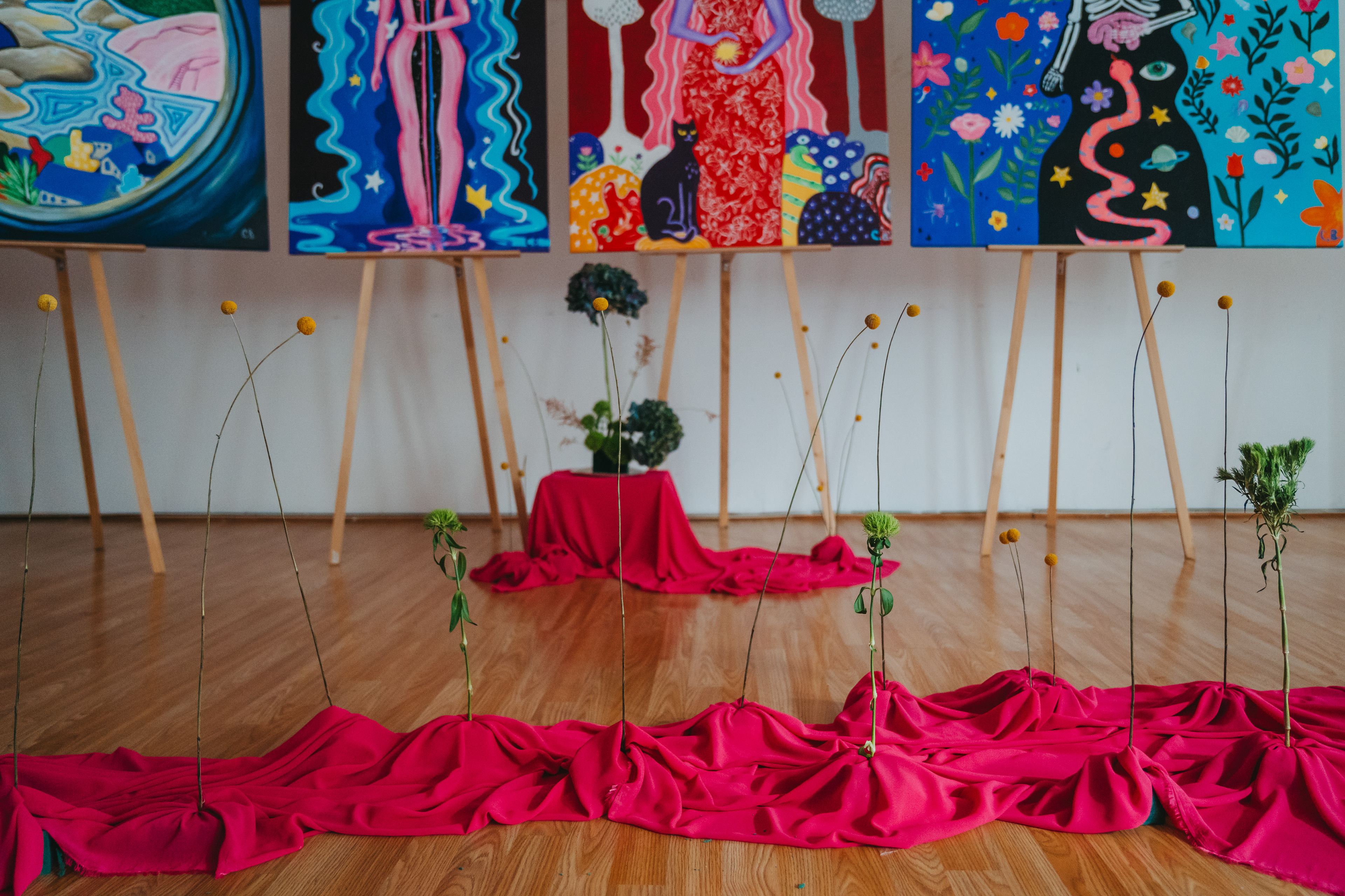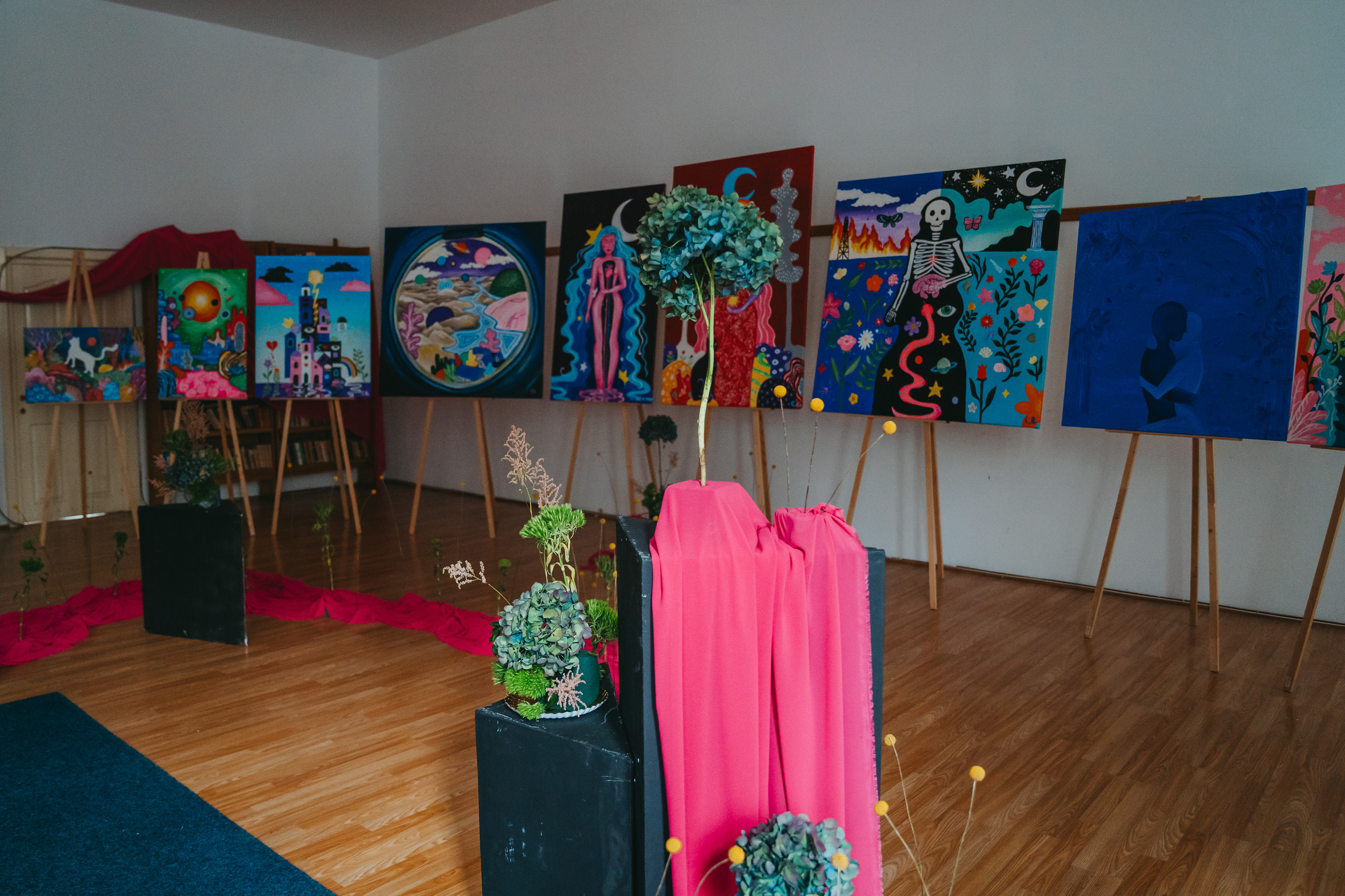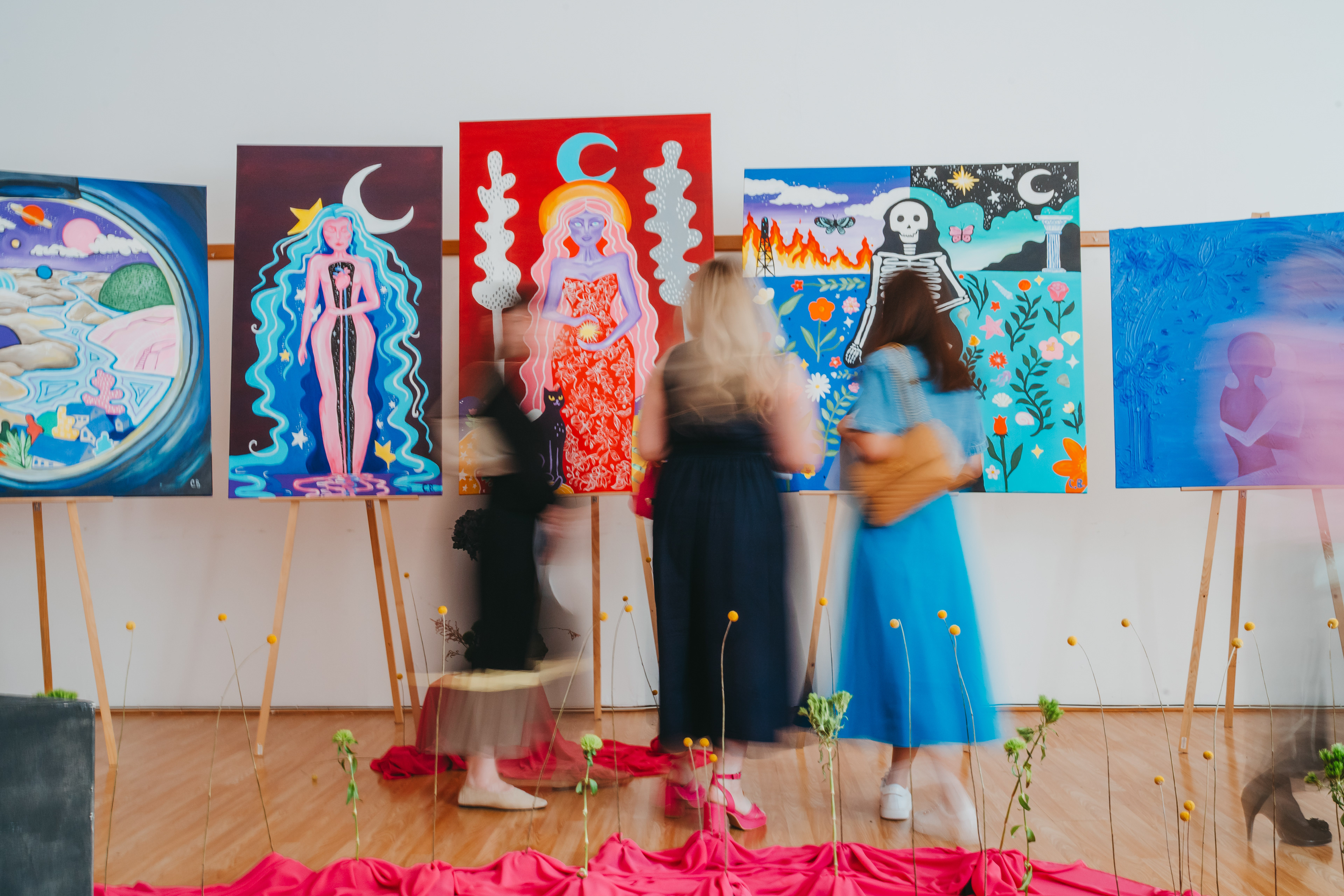 Unapologetically Divine is Cristina Bejan’s first major art exhibition, a visual journey through vulnerability, sensuality, healing, and self-discovery. The show combines large-scale paintings, interactive installations, and symbolic motifs inspired by spirituality, tarot, and the balance of feminine and masculine energies. For the vernissage, Cristina wore a handmade leather star set she designed and created herself under her brand Lunara, a statement outfit that embodied the exhibition’s themes of celestial power, self-expression, and unapologetic authenticity. Through this body of work, Cristina invites viewers into a space where fashion, art, and emotion merge, encouraging them to embrace their own divine essence.
